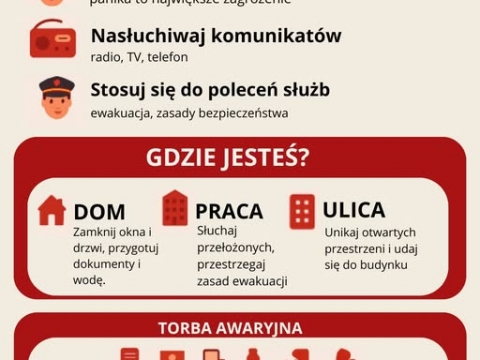 CO ROBIĆ, GDY USŁYSZYSZ SYRENĘ? Przygotowaliśmy dla Was krótką grafikę z zasadami postępowania w przypadku ogłoszenia alarmu syreną. Warto się z nimi zapoznać – ta wiedza może uratować życie i pomóc w zachowaniu spokoju w... więcej